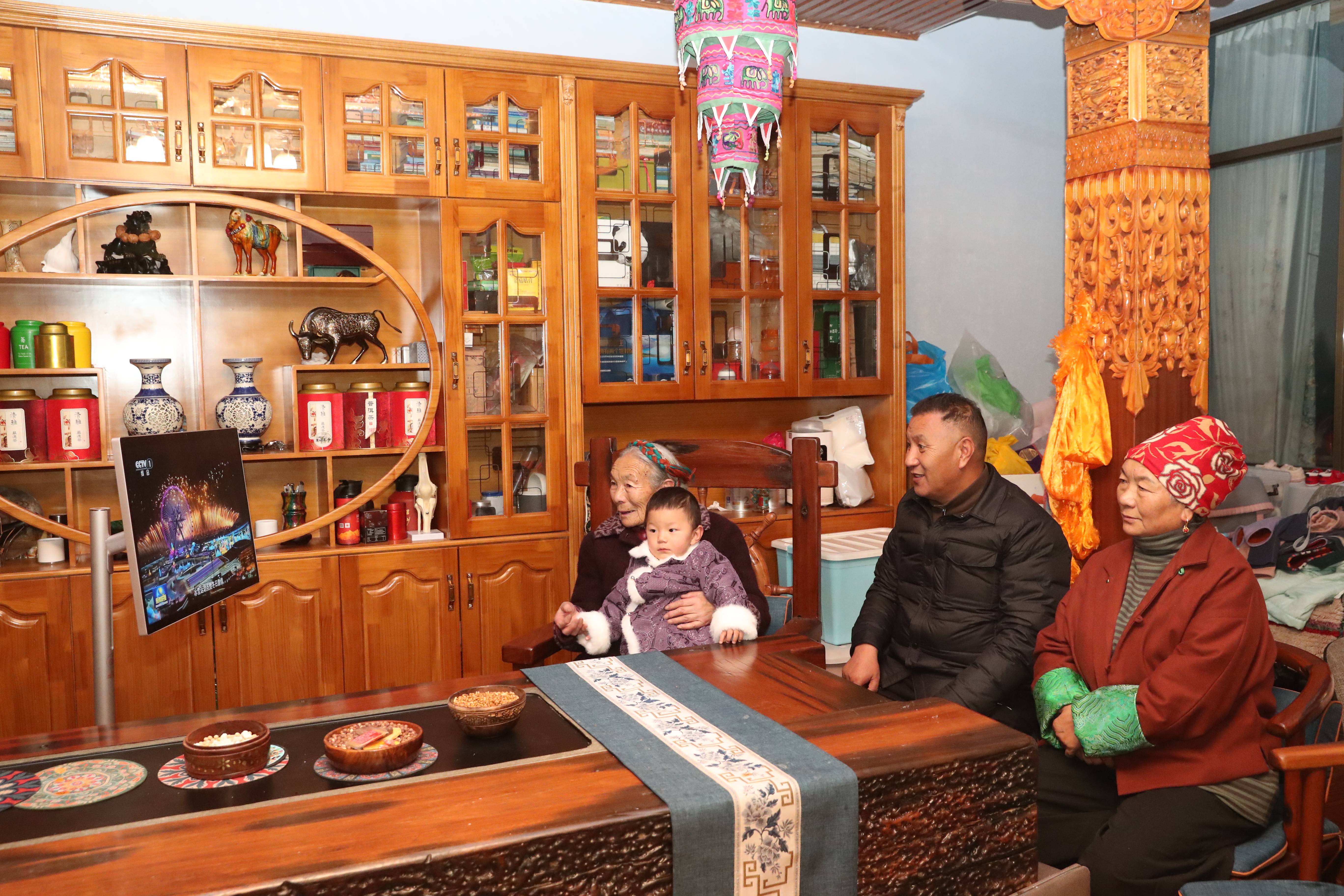 青藏高原南部,山南市的一戶藏族民居里,電視上正放著習(xí)近平總書記發(fā)表新年賀詞的視頻直播。年近九旬的藏族老人陳明英拿著遙控器想把聲音調(diào)得更高些。
